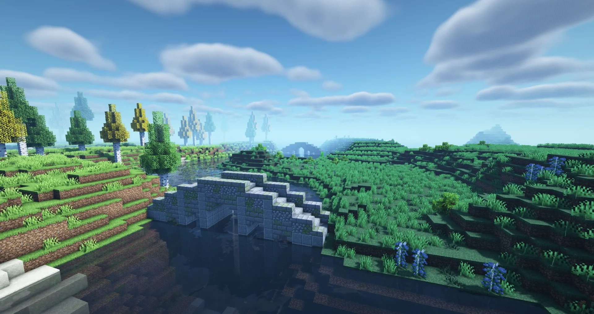 Генератор мира теперь расставляет по биомам каменные и деревянные мосты. Они вписываются в ландшафт, перебрасываясь через узкие реки и глубокие овраги. Конструкции выглядят как естественная часть местности, а не как случайные нагромождения блоков. Встретить такую постройку в лесу или горах всегда приятнее, чем просто перепрыгивать поток воды. Подобная деталь оживляет карту, делая путешествие по миру логичным и комфортным. Больше не нужно тратить время на возведение переправ, чтобы добраться до соседнего холма.