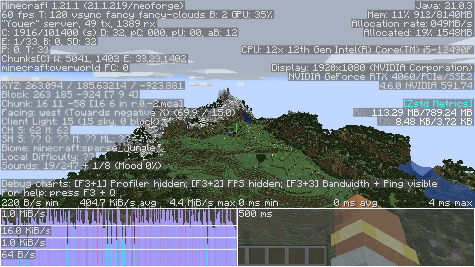 Мод внедряет алгоритм сжатия Zstandard для передачи данных между сервером и клиентом. Вместо стандартных протоколов игра упаковывает пакеты информации на лету, что заметно снижает нагрузку на интернет-канал. При низком пинге или нестабильном соединении прогрузка чанков становится плавнее, а задержки при обновлении мира практически исчезают. Технически это работает через быструю декомпрессию на стороне игрока, которая почти не нагружает процессор. Сервер тратит минимальное время на упаковку трафика, а объем передаваемых данных уменьшается в несколько раз. Особенно это заметно на многолюдных серверах с обилием кастомных блоков, где поток информации от сервера обычно перегружает сеть.