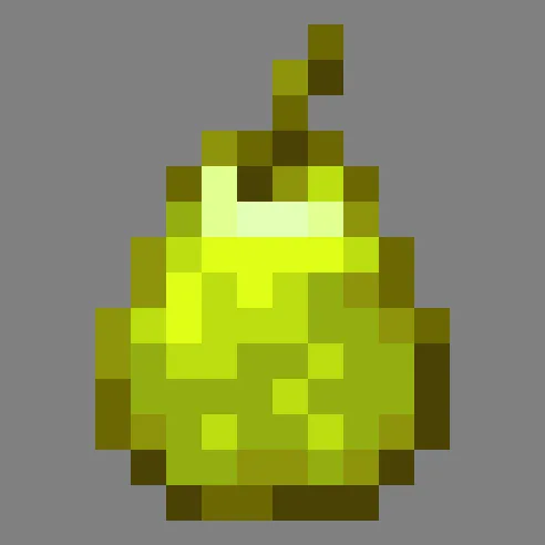 Текстура яблок заменена на груши. Фрукт получил характерную вытянутую форму с расширением в нижней части и более приглушенный желто-зеленый