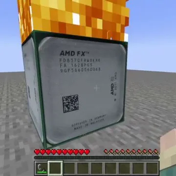 Стандартный блок динамита превращается в системный блок процессора с характерной маркировкой FX на боковой панели. Текстура сохраняет кубическую форму, но вместо фитиля сверху появляется массивный алюминиевый радиатор с медными тепловыми трубками. При активации красный светодиод на передней панели начинает мигать, а сам процессор издает отчетливый звук раскручивающегося кулера. После короткой задержки происходит детонация, сопровождающаяся облаком цифровых помех вместо привычного дыма и характерным электрическим треском.