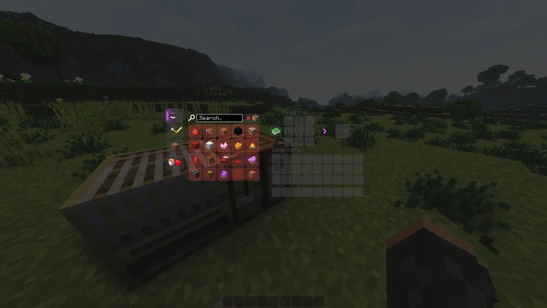 Темный интерфейс с полупрозрачной подложкой меняет привычное восприятие игры. Скругленные углы окон убирают лишнюю строгость, делая каждое меню визуально легче и современнее. Кнопки здесь выделяются аккуратными фиолетовыми акцентами, которые не перегружают экран. Минималистичный дизайн сохраняет функциональность, позволяя быстро ориентироваться в настройках и инвентаре без визуального шума.