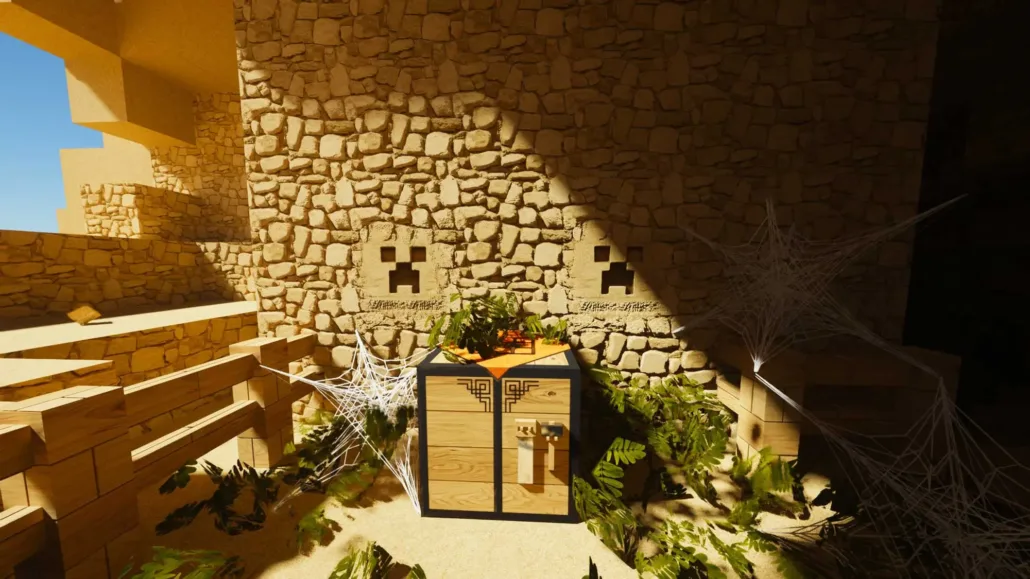 Этот набор текстур переосмысливает стандартную графику Minecraft через призму высокого реализма. Поверхности блоков приобретают физически корректные свойства благодаря поддержке PBR, что заставляет свет естественно играть на металле, камне и дереве. Гладкие поверхности получают характерный блеск, а шероховатые материалы вроде булыжника заметно поглощают освещение, создавая правильные тени и контраст. Интеграция технологии POM добавляет блокам выраженный объем и глубину, превращая плоские текстуры в сложные рельефные структуры. Трещины в кирпичной кладке или неровности на стволах деревьев ощущаются физически осязаемыми, так как каждый слой материала выступает над плоскостью. Картинка перестает быть набором пикселей и превращается в детализированное окружение, где каждый блок сохраняет привычную узнаваемость, но обретает современную визуальную плотность.