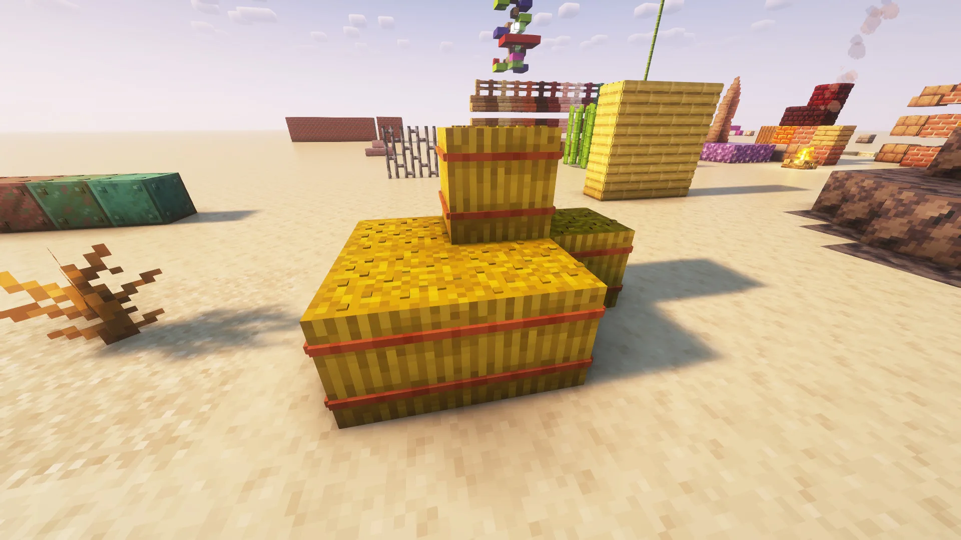 Текстуры с проработкой глубины превращают плоские поверхности в объемные конструкции. Камни обретают сколы, кирпичная кладка уходит вглубь швов, а доски проступают отчетливыми ребрами. Кажущаяся плоской стена внезапно ловит свет, создавая естественные тени в углублениях. Такой подход меняет восприятие пространства, делая архитектуру живой и тактильной. Каждый блок теперь выглядит массивным, а не просто нарисованным на квадрате. В интерьерах это дает ощущение добротности, а в ландшафте добавляет реалистичной фактуры почве и скалам.