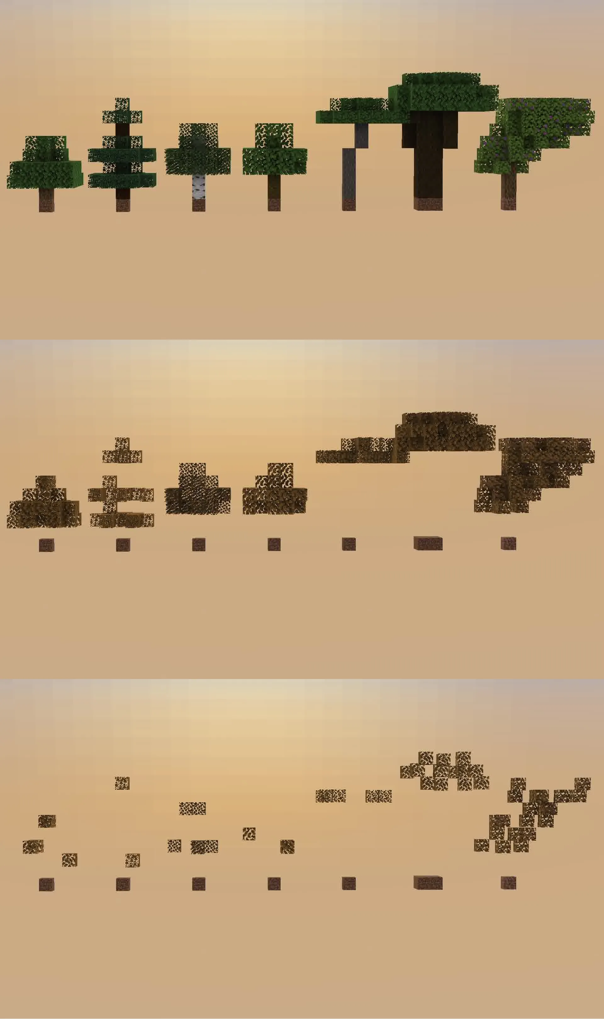 Этот ресурс пак меняет визуализацию листвы при вырубке дерева. Когда вы ломаете ствол, блоки листвы моментально меняют текстуру на полупрозрачную или окрашиваются в сигнальный цвет. Это дает четкое понимание, какая часть кроны осталась без опоры и скоро исчезнет сама по себе. Такая индикация избавляет от необходимости гадать, где именно спрятался неучтенный блок древесины. Вы сразу видите потенциальные зоны спавна саженцев или яблок, не тратя время на лишние клики инструментом. Механика делает процесс заготовки ресурсов предсказуемым и заметно ускоряет темп игры.
