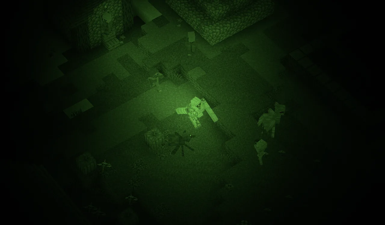 Этот шейдер пак создан для тех, кто хочет добавить в Minecraft атмосферу ночного видения, как в реальной жизни. Он меняет освещение, делая ночь более мрачной и реалистичной, а также добавляет эффект зелёного свечения, характерный для приборов ночного видения. С этим шейдером вы сможете лучше ориентироваться в темноте, замечать детали, которые раньше были скрыты, и почувствовать себя настоящим сталкером или спецназовцем. Он идеально подходит для ролевых игр, хорроров или просто для тех, кто любит мрачные и атмосферные приключения.