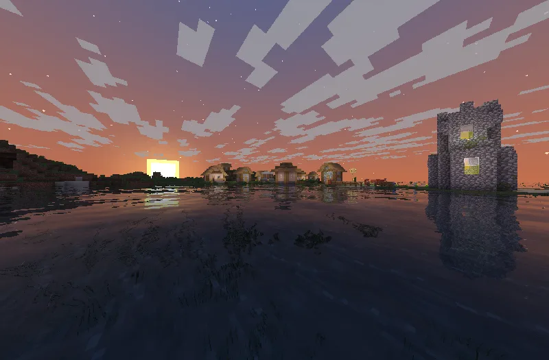 Этот шейдер-пак, который я обычно ставлю на слабые ПК, делает воду в Minecraft гораздо приятнее, без всяких тормозов. Он добавляет реалистичные волны, блики и даже преломления, как будто смотришь сквозь настоящее стекло. В итоге, обычная вода в игре становится живой, с ней как-то уютнее играть, особенно когда стоишь на берегу или плывешь. Все это работает плавно, даже на старых компьютерах, так что можно наслаждаться картинкой без лагов.