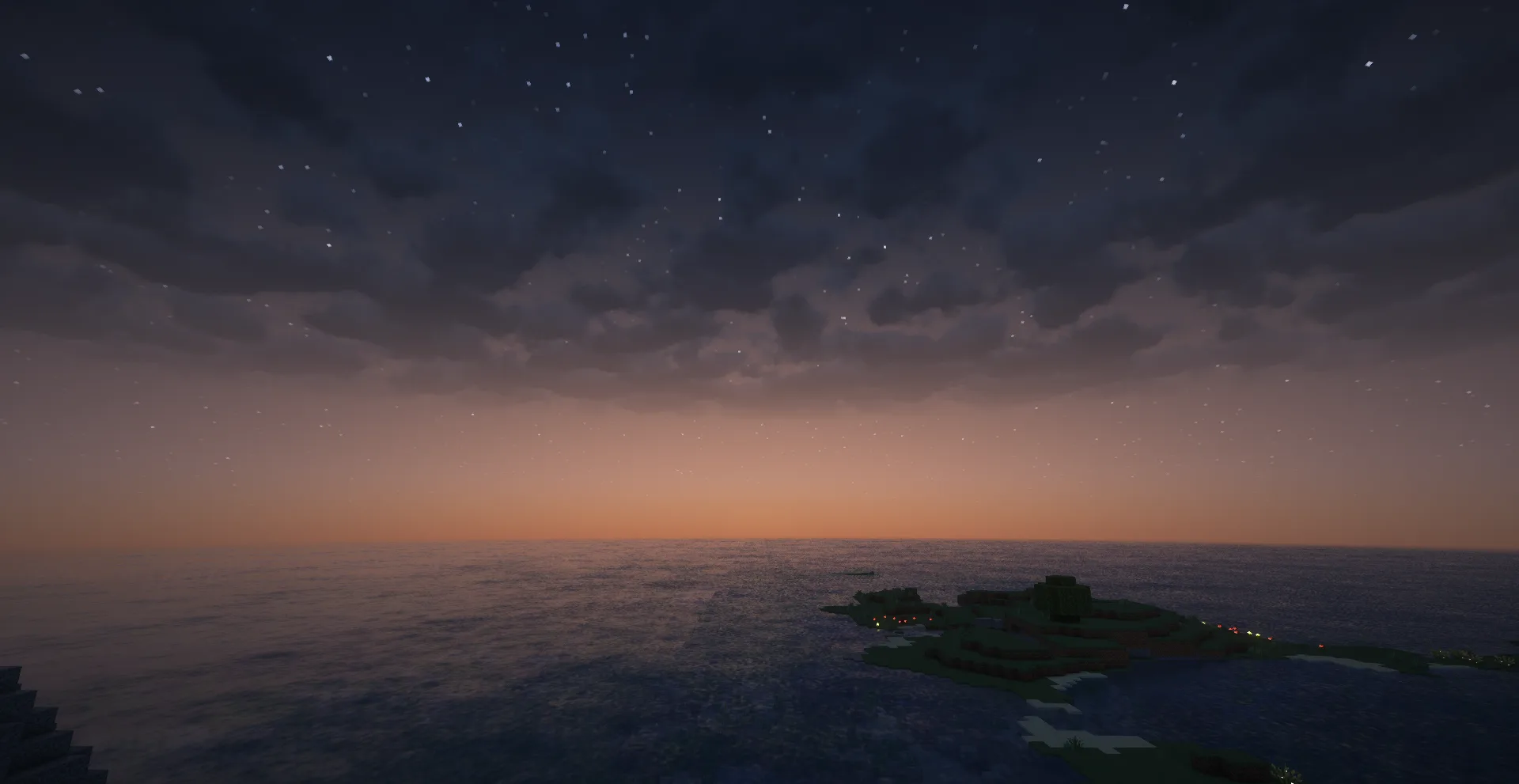 Этот шейдер-пак преображает мир Minecraft, добавляя ему неземной красоты и кинематографического освещения. Он вводит объемные облака, которые придают небу глубину, а атмосферные тона приобретают тёплые, золотистые оттенки, создавая ощущение волшебства. Визуальные эффекты распространяются и на другие измерения. Нижний мир становится кристально чистым, позволяя разглядеть каждую деталь, а измерение Край получает особые магические эффекты, делая его по-настоящему завораживающим.