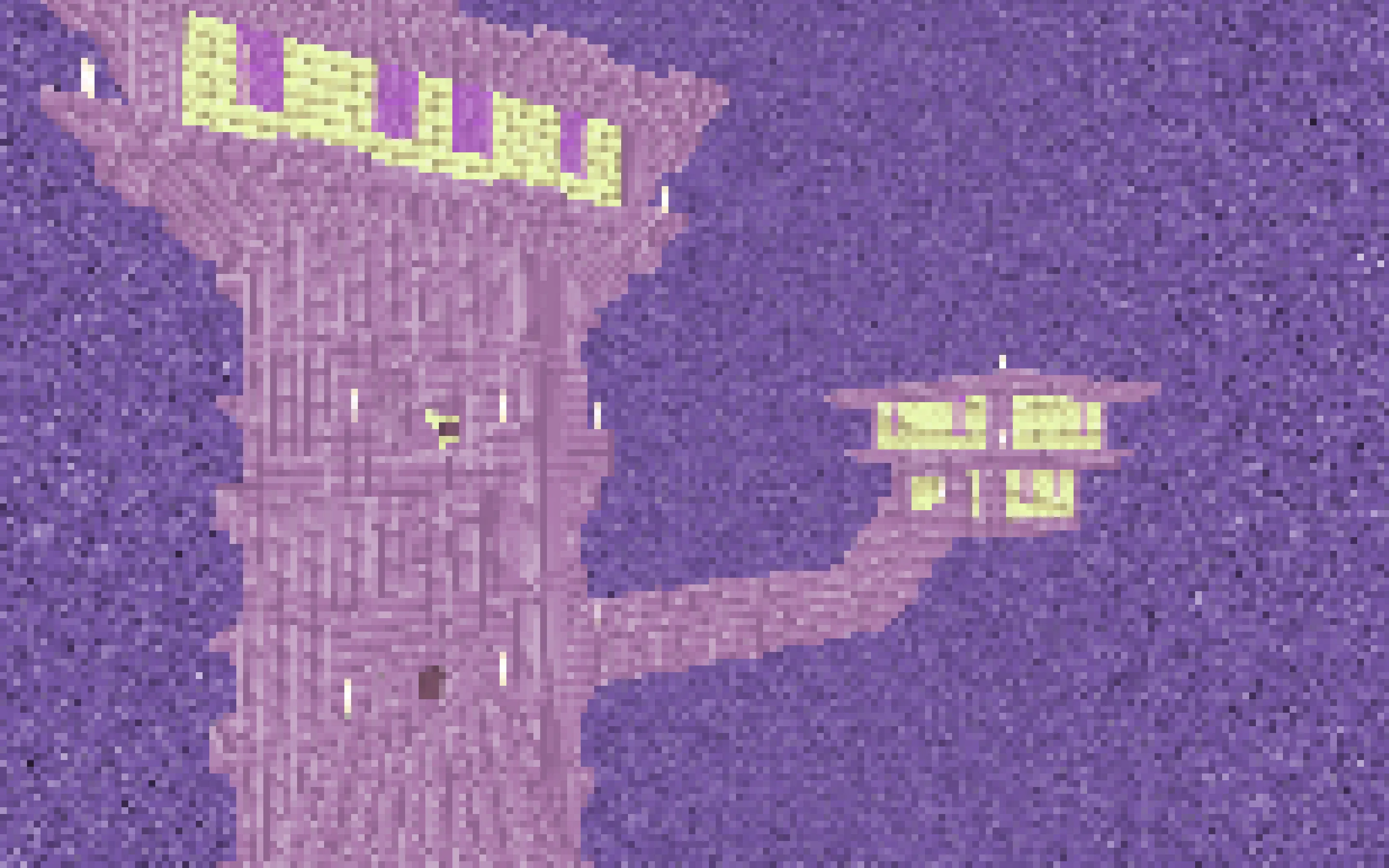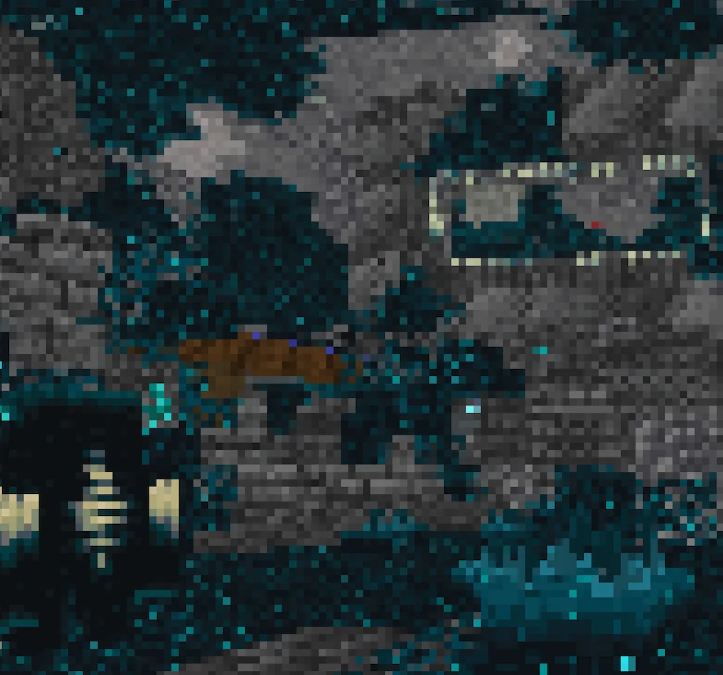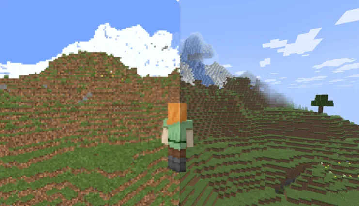 Этот шейдер переводит графику игры в формат восьмибитной консоли прошлого века. Текстуры теряют привычную плавность, превращаясь в жесткую сетку пикселей с ограниченной палитрой цветов. Свет и тени при такой обработке становятся плоскими, как на старых телевизорах. Блоки земли и листвы сливаются в однотонные пятна, а горизонт пропадает за характерной для ретро-приставок дымкой. Весь мир выглядит как застывший кадр из классического платформера, где каждый шаг ощущается как движение по сетке.