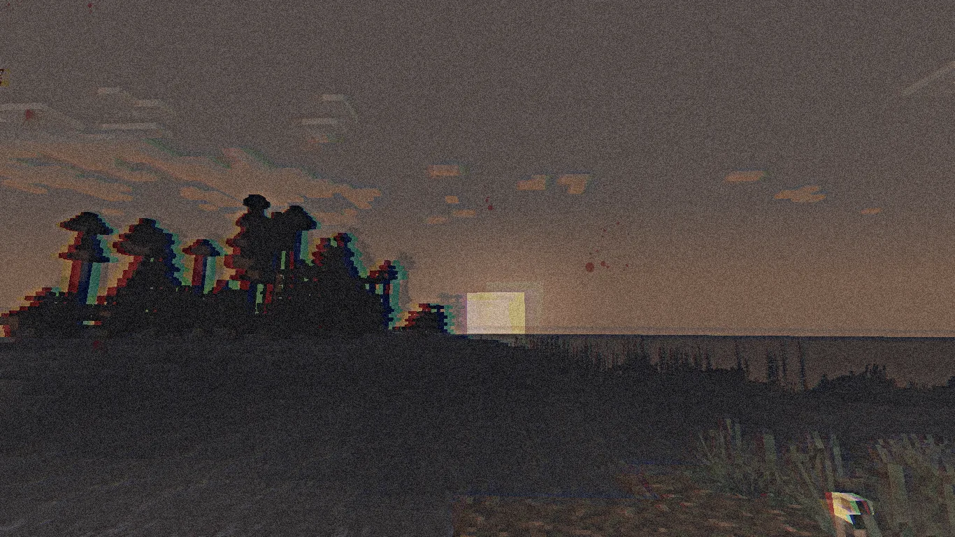 Этот шейдер превращает картинку в нечто похожее на старую видеокассету, которая повидала лучшие времена. Появляются искажения, зернистость, мерцание и размытые цвета, создавая ощущение, будто смотришь на старую запись. Всё это вместе работает на атмосферу, погружая в мир, где реальность кажется немного зыбкой, как будто ты попал в чей-то забытый кошмар.
